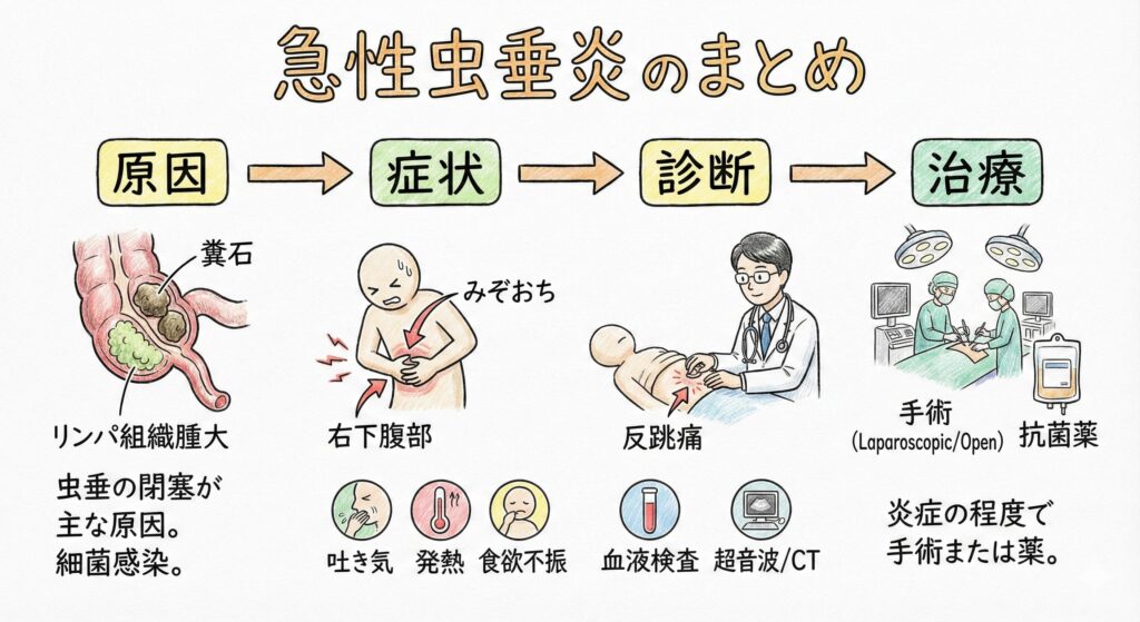 1990年代までは、虫垂は切除しても消化管機能に影響がほとんどないため(無いといっても過言ではないです)、右下腹部痛の方は、手術を受け、術後に抗生剤を受けるというコースが標準でした。